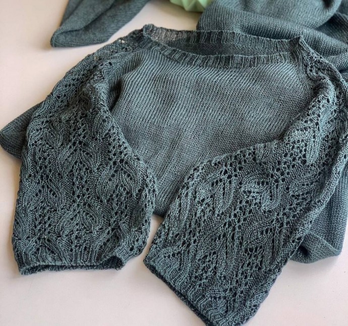 Акцент на рукава: джемпер с ажурными рукавами спицами