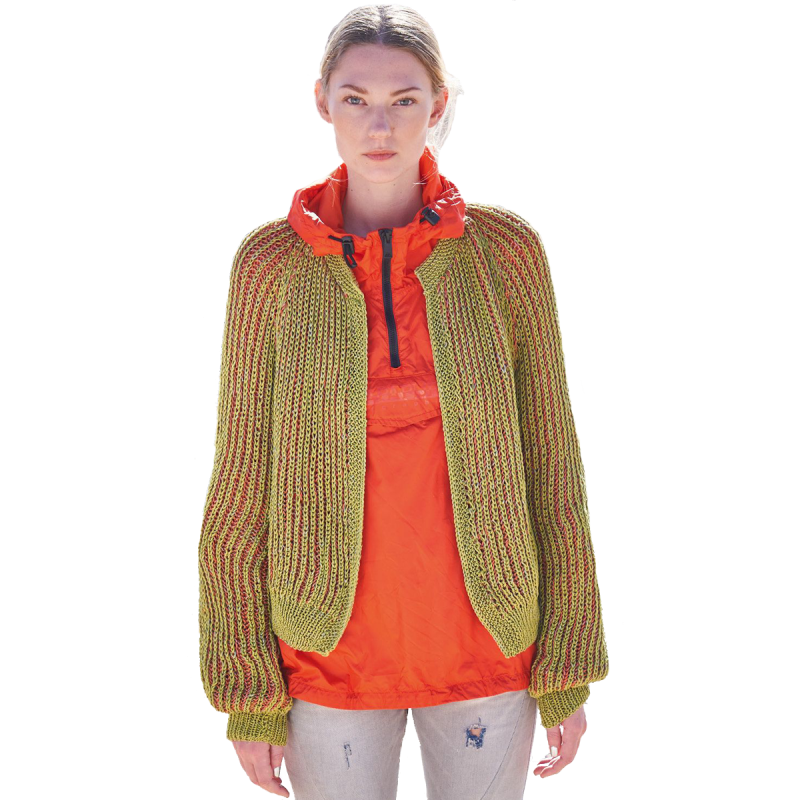 Рельефное вязание, объёмная резинка. Жакет двухцветной резинкой бриошь.