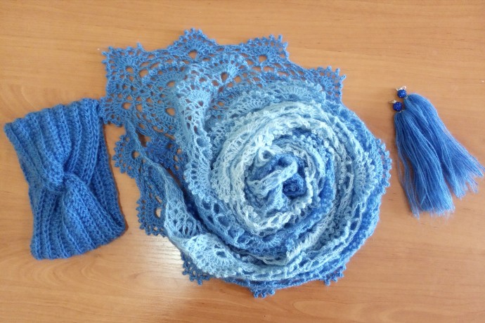 Шаль и повязка крючком. Ализе ангора омбре.