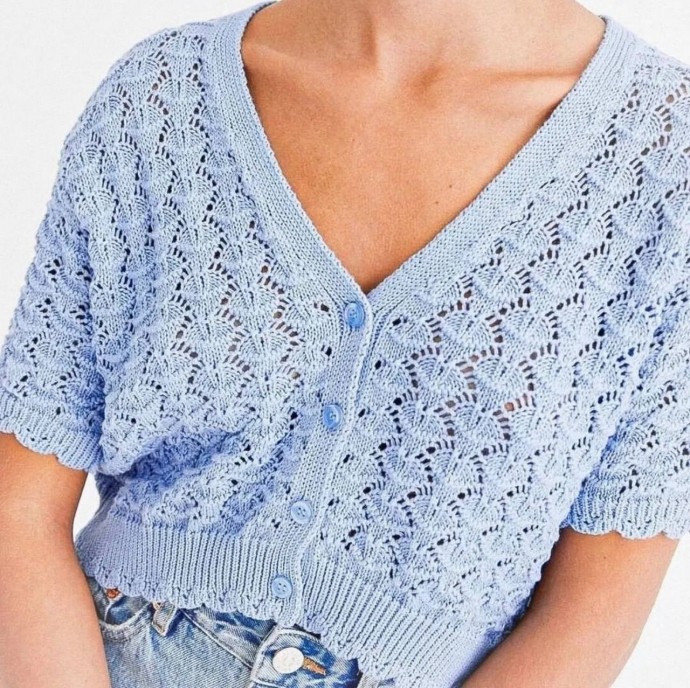 Укороченный жакетик красивым ажурным узором