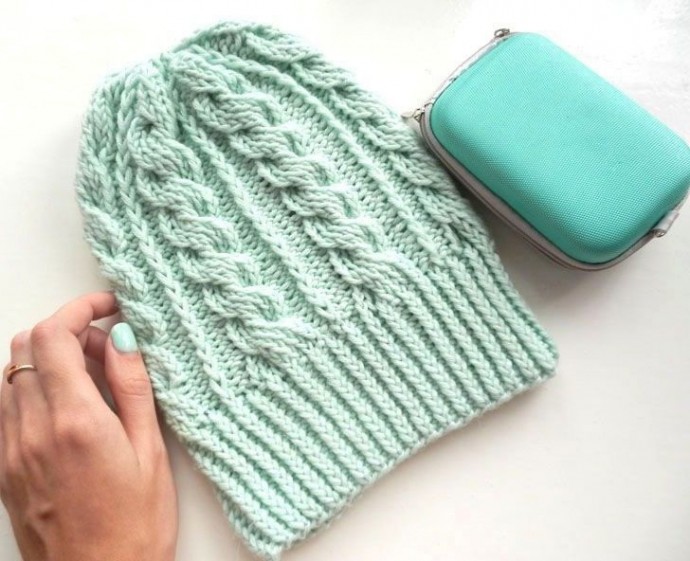 Шапочка спицами с простыми жгутами