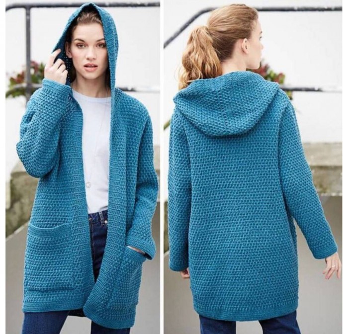 Кардиган с капюшоном крючком узором "решётка"
