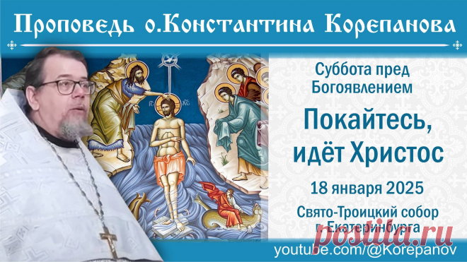 🔻Текст проповеди (разверни)🔻 СУББОТА ПРЕД БОГОЯВЛЕНИЕМ Покайтесь, идет Христос Проповедь священника Константина Корепанова на Божественной литургии в Свято-Троицком кафедральном соборе Екатеринбурга. Во имя Отца и Сына и Святаго Духа. ... Покайтесь, ибо идет Тот, у Которого я не достоин развязать сандалии на ногах Его. Это Тот, Кто будет крестить вас Духом Святым и огнем, Тот, Кто возьмет грехи ваши. Агнец Божий, Спаситель мира, Мессия – как бы мы Его ни называли, – ...