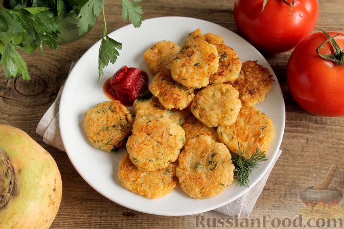 Рецепт: Постные драники из репы с укропом на RussianFood.com