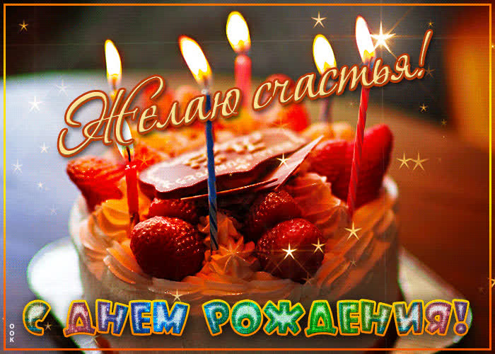 Пестрая гиф-открытка, желаю много счастья в день рождения - оригинальное поздравление онлайн, отправляйте бесплатно в социальных сетях. Коллекция красивых открыток с днем рождения мужчине.