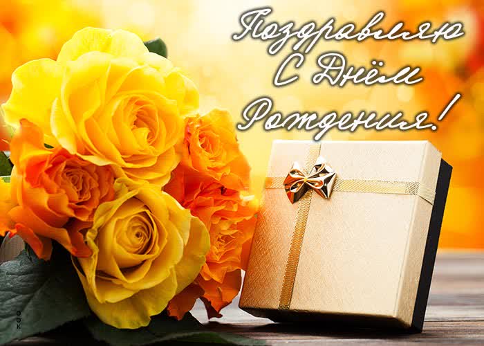 Открытка с днем рождения женщине с оранжевыми розами и подарком - приятное и искреннее поздравление онлайн. Открытка с днем рождения женщине с оранжевыми розами и подарком, скачать и отправить бесплатно.
