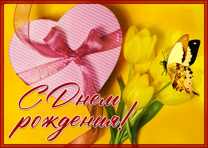 Картинка с днем рождения женщине с желтыми тюльпанами - скачать бесплатно. Прикольная анимационная открытка Картинка с днем рождения женщине с желтыми тюльпанами - отправить прямо сейчас.