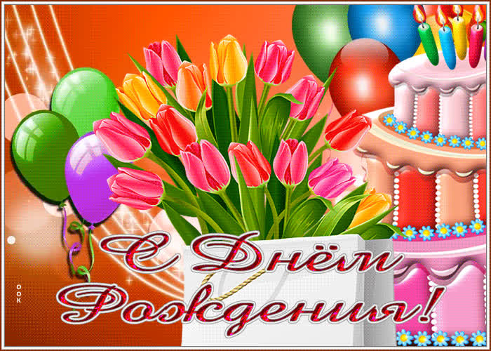 Открытка с днем рождения женщине с тортом и букетом тюльпанов - приятное и искреннее поздравление онлайн. Открытка с днем рождения женщине с тортом и букетом тюльпанов, скачать и отправить бесплатно.