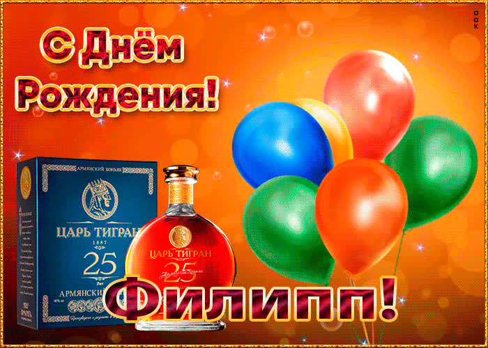 Картинка с Днем Рождения с именем Филипп - оригинальное начало дня для именинника. Красочная и позитивная Картинка с Днем Рождения с именем Филипп подарит хорошее настроение на весь день.