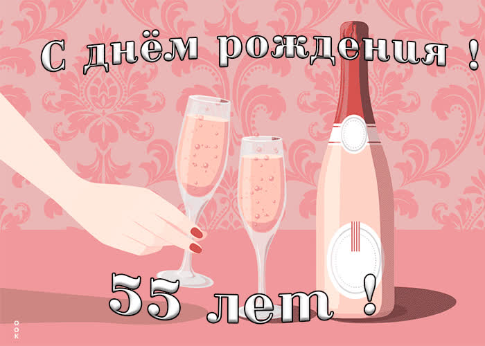 Оригинальная открытка с 55-летием - праздничное поздравление для лучшего настроения имениннику. Коллекция красивых открыток с юбилеем, порадуйте друзей и коллег, это бесплатно.