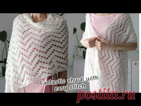 Как быстро связать крючком новую шаль с необычным узором для начинающих