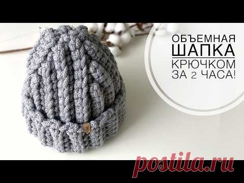 МОДЕЛЬ ПОД ЛЮБОЙ ОВАЛ ЛИЦА! ОБЪЁМНАЯ ШАПКА С ОТВОРОТОМ! Шапка из толстой пряжи, шапка крючком,