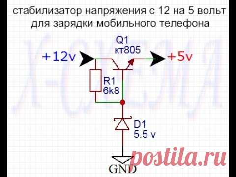 Х-СХЕМА: Схема простого стабилизатора с 12 на 5 вольт
