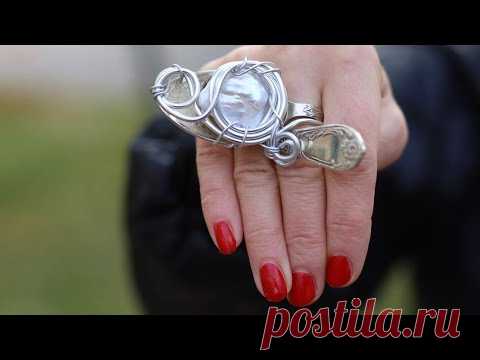 Кольцо из посеребреной ложки и жемчуга. Плетение из проволоки. #кольцо коль