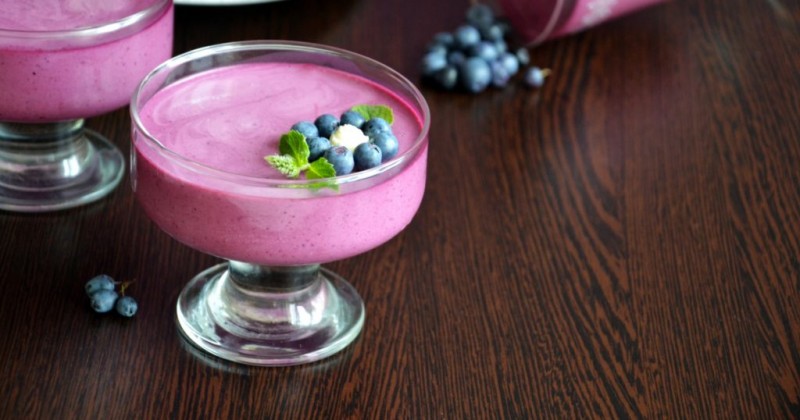 Сливочное желе с черникой Ингредиенты: 1 ст сливок,1 ст молока,20 г желатина,100 г сахара,10 г ванилина,300 г черникиПриготовление: Желатин залить 50 мл холодной воды, размешать и оставить для набухания.Чернику промыть, подсушить на полотенце и пюрировать блендером.Смешать сливки с молоком, поставить на малый...