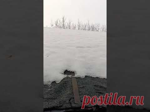 На изображении представлено зимнее время года, что подтверждается толстым слоем снега на крыше дома. Часть снега свисает с края крыши, образуя небольшой выступ. Текстура крыши может быть из черепицы темного цвета, видны отдельные полосы и текстуры, придающие ей характерный вид. На заднем плане видны голые деревья, лишённые листвы, что добавляет ощущение зимнего холодного пейзажа. Небо кажущееся затянутым облаками придаёт картине пасмурность и ощущение стужи. Атмосфера в целом спокойная, подчеркивает традиционные зимние условия, когда природа погружена в зимнюю спячку.