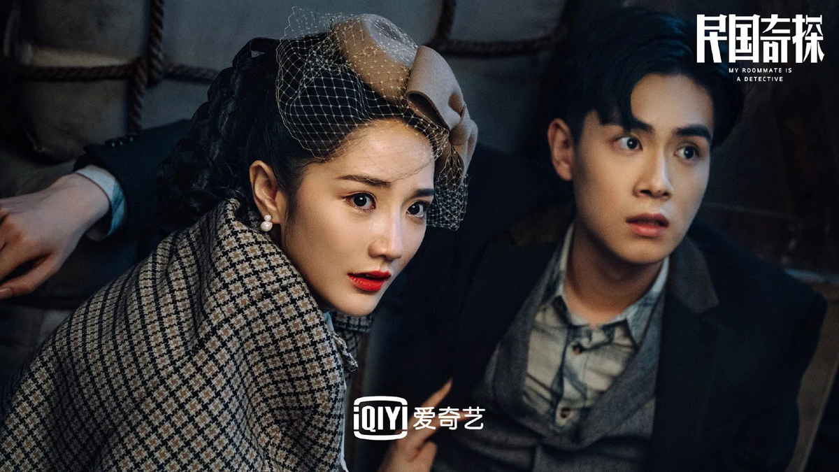 На изображении изображены две персонажи из китайской дорамы "My Roommate is a Detective". Женщина слева с тёмными волосами носит элегантную шляпку с сеткой и крупные серёжки. Она одета в стильное пальто с клетчатым узором. Её макияж акцентирует губы ярким красным цветом, добавляя драматичности её образу. Мужчина справа в классическом костюме смотрит в одну сторону с выражением обеспокоенности. Их образы навевают атмосферу загадки и сюжета, характерного для детективных жанров. Фон затемнён, чтобы усилить таинственность сцены. На изображении присутствует логотип сервиса iQIYI, что указывает на источник дорамы. Кроме того, на переднем плане размещён текст "postila.ru", что может быть связано с публикацией или авторством контента.