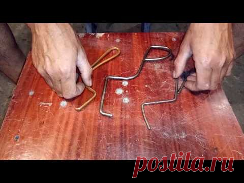 На изображении показаны две человеческие руки, которые держат два металлических крюка. Большая часть стола выполнена из дерева с видимыми следами износа, включая царапины и пятна. Крюки имеют изогнутую форму и выполнены из металла разного цвета: один из них золотистого оттенка, другой более темный, ближе к черному или серому. Фон нечеткий, что делает акцент на руках и предметах на столе. Атмосфера изображает процесс либо ремонта, либо подготовительной работы с металлом, возможно в мастерской. Это подчеркивает интерес к ручной работе и навыковому труду с использованием простых инструментов. Вероятно, действия направлены на демонстрацию или пример неправильного использования техники безопасности, что как бы иллюстрирует надпись "Техника безопасности тоже ломается, как и любая другая техника 🌟😇✨", что содержит некоторую долю иронии.