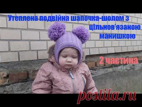 Дитяча тепла, подвійна шапочка .Майстер-клас по в'язанню шапочки-шолома з цільнов'язаною манишкою.