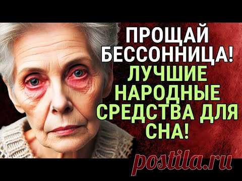 На изображении пожилая женщина с короткими седыми волосами, выражение лица серьезное, с усталым взглядом. Ее глаза окружены заметными красными кругами, что может указывать на бессонницу или крайнюю усталость. На женщине одето что-то светлое и вязкое, возможно, связанный свитер или кофта. На темно-красном фоне изображены крупные белые и зеленые буквы, которые гласят: "Прощай, бессонница! Лучшие народные средства для сна!". Этот текст создает контраст и привлекает внимание к проблеме бессонницы и возможным народным решениям для улучшения сна. Сайт или ресурс, откуда взято изображение, указан внизу справа, с надписью "postila.ru". Атмосфера изображения пытается быть убедительной, обращаясь к восточным традиционным методам для решения проблемы сна и здоровья.