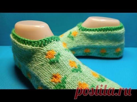 На изображении представлена пара вязаных тапочек ярко-зеленого цвета с яркими оранжевыми и зелеными узорами в виде цветков, что добавляет изделию немного игривости и уютности. Видно, что тапочки изготовлены из мягкой, уютной пряжи с дополнительными ребристыми вставками по краям, что может служить для лучшей фиксации на ноге. Фон изображения выполнен в светло-голубом цвете, который эффектно подчеркивает основные детали и цветовую гамму тапочек. Яркий и насыщенный зеленый цвет тапочек заключает основную часть, а контрастные оранжевые цветки визуально привлекают внимание, создавая плавную гармонию между элементами узора. На фоне также находится легкая текстура, добавляющая глубины изображению, в то время как примененные цвета создают теплую атмосферу удобства и уюта. В нижнем правом углу присутствует надпись "postila.ru", что может указывать на источник или автора изображения.
