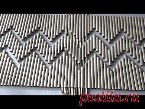 На изображении представлена композиция из многочисленных трубочек, расположенных в геометрическом порядке на ровной поверхности. Трубочки выложены в виде зигзагообразного узора, создавая визуальный эффект волнообразного движения. Материал трубочек светлый, вероятно, картон или подобный материал, придающий им естественный цвет. Зигзагообразный узор, с повторяющейся симметрией, предполагает внимательное и точное укладку, демонстрируя искусство минимализма в каждом элементе. Фон изображения кажется нейтральным, позволяя сконцентрироваться на деталях композиции. Изображение может содержать скрытое сообщение или служить образцом для творчества в ремонте или декоре. Нижний правый угол содержит логотип "postila.ru", указывающий на возможный источник или авторство материала.