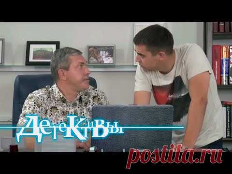На изображении два мужчины, находящиеся в офисе. Один из них сидит за столом в цветастой рубашке, его волосы короткие и седоватые. Перед ним ноутбук, за которым он смотрит на стоящего рядом молодого человека. Тот в светлой футболке с принтом, слегка наклонился вперед, опираясь на стол. На заднем плане на полке расположены книги и несколько фотографий в рамках. Атмосфера выглядит деловой, возможно, они обсуждают важный вопрос.