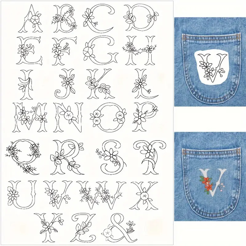 1-упаковка водорастворимого набора ов для вышивки - 27 творческих цветочных алфавитных узоров швейный с самоклеящейся подложкой - простая в использовании швейная бумага для проектов своими руками на шляпах, перчатках, одежде - arts, crafts & sewing - Temu Moldova