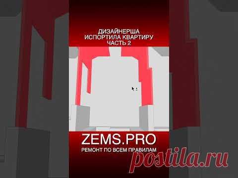 На изображении представлена обложка ролика или статьи с заголовком "Дизайнерша испортила квартиру часть 2". На переднем плане в центре расположен текст, выполненный белым шрифтом на ярко-красном фоне. Ниже заголовка указано "ZEMS.PRO ремонт по всем правилам", что предполагает рекламное содержание, связанное с ремонтом или дизайном интерьера. Композиция выполнена в минималистическом стиле с доминирующим красным цветом, что привлекает внимание зрителя. Вокруг основного текста видны абстрактные формы светло-серого и белого цвета, которые создают ощущение архитектурных элементов или интерьеров. Атмосфера изображения подчеркивается контрастом красного и белого цветов, создавая настроение срочности и значимости. Фон изображения представлен в темных оттенках, что еще больше выделяет центральную надпись и делает ее легко читаемой для аудитории.