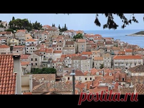 Изображение показывает живописный панорамный вид на небольшой город, расположенный на побережье. Архитектура города представлена плотной застройкой из каменных домов с типичными оранжевыми черепичными крышами, характерными для средиземноморских стран. На заднем плане видно спокойное синее море, соприкасающееся с ясным небом. Вдали на горизонте просматриваются деревья и кустарники, придающие пейзажу зелёные оттенки. Выделяется общая гармония в сочетании природных и архитектурных элементов, создавая атмосферу спокойствия и уютного уюта. Горизонтальная композиция снимка акцентируется на линии контраста между строениями и морем, что подчеркивает красоту средневекового городского планирования.