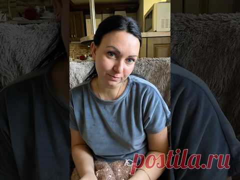 На изображении женщина с черными волосами, аккуратно зачесанными назад, одета в простую серую футболку. Она сидит на диване с мягкими подушками и покрывалом светло-коричневого цвета. На заднем плане видна кухня с обилием деревянных кухонных шкафов и микроволновой печью. Атмосфера уюта подчеркивается тёплым освещением, которое мягко рассеивается в помещении. Женщина выражает спокойствие и небольшой интерес. Обстановка кажется домашней, действующие лица расположены неформально, что создаёт ощущение непосредственности и спокойствия. Поверхность дивана текстурирована, на светло-серой подушке спереди у неё лежит коричневый вязаный элемент, возможно, игрушка или плед.