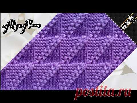 На изображении представлена детализированная фотография связанного вручную полотна с выразительным геометрическим узором. Фон окрашен в насыщенный фиолетовый цвет, акцентируя внимание на сложных треугольных формах, которые создают рельефную текстуру. Такое плетение, напоминающее классические вязальные узоры, может быть создано из мягкой шерсти или акрила, и оно прекрасно подходит для модных аксессуаров, таких как свитера или шарфы. Название "Alison Alverson" присутствует в верхнем левом углу, что может указывать на имя дизайнера или бренда, специализирующегося на подобной продукции. Также на изображении присутствует размещение маркетингового слогана и логотипа "postila.ru", добавляющего элемент брендинга. Общая атмосфера снимка теплая и уютная, что вызывает ассоциации с зимними вечерами и домашним комфортом.