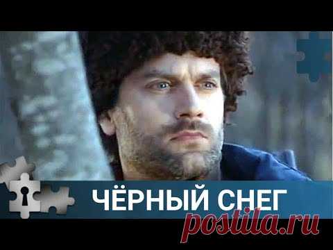На изображении показан мужчина с серьёзным выражением лица, одетый в тёмное пальто и меховую шапку. Он находится на улице зимой, вероятно, в лесу или в другом природном окружении. На переднем плане частично виден ствол дерева. Мужчина показан в профиль, его внимание сосредоточено на чем-то вне кадра. Внизу фотографии располагается надпись "ЧЁРНЫЙ СНЕГ", возможно, это название фильма или книги. Атмосфера на изображении напряженная, возможно, связана с сюжетом произведения. В правом нижнем углу виден логотип сайта "postila.ru".