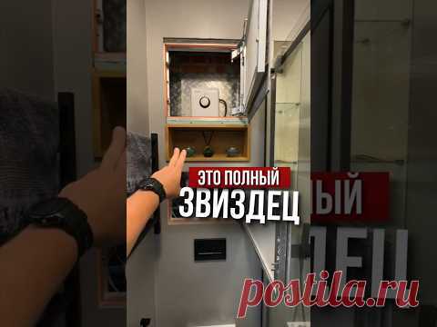 На изображении запечатлён интерьер современной комнаты с акцентом на небольшую встроенную нишу в стене. Стены окрашены в светлые тона, создавая контраст с тёмной мебелью. В этой нише находится декоративный элемент с геометрическим узором и несколько предметов, которые могут быть связаны с декором или хранением мелочей. На переднем плане видна рука, указывающая на нишу, что привлекает внимание к конструктивным деталям интерьера. На руку надеты часы тёмного цвета. Текст на изображении содержит фразу "ЭТО ПОЛНЫЙ ЗВИЗДЕЦ", что добавляет контекст к ситуации как нечто необычное или вызывающее удивление. Справа в нижней части присутствует логотип или водяной знак с текстом "postila.ru", указывая на источник изображения.