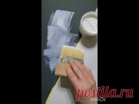 На изображении видно, как человеческая рука использует прямоугольную губку или скребок для нанесения белой пастообразной субстанции на темную поверхность. Рука плотно сжимает инструмент, обеспечивая равномерное распределение вещества. На заднем плане можно увидеть емкость круглой формы, вероятно, с оставшейся пастой, являющуюся источником материала. Белое вещество контрастирует с тёмным фоном, создавая эффект заметной текстуры. Вероятно, это процесс художественного или промышленного нанесения покрытия. Рабочая поверхность может быть подготавливаемой под живопись или другой вид декоративного оформления. Атмосфера изображения носит характер сосредоточенности и аккуратного выполнения задачи. Пастообразное вещество, предположительно, используется для создания уникального визуального эффекта или для грунтовки перед нанесением цветов.