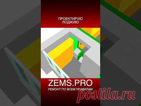 Изображение представляет собой рекламный баннер компании ZEMS.PRO. В центре расположен 3D-проект балконного помещения или лоджии, выполненный в минималистском стиле с использованием ярких цветов, таких как желтый и зеленый. На переднем плане выделяется желтая деталь, симметричная с дверным или оконным проемом, вероятно символизирующая солнечный свет или элемент дизайна. Серый цвет доминирует в окружающей конструкции, намекая на бетон или другой строительный материал, что связано с инженерным проектированием. В верхней части изображения надпись "Проектирую лоджию", а в нижней части указано "ZEMS.PRO Ремонт по всем правилам", что подчеркивает профессионализм и строгое следование стандартам. Эстетика баннера предполагает чувство уверенности и надежности в предлагаемых услугах.