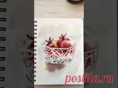Гранаты в вазочке акварелью. #art #акварель #watercolor