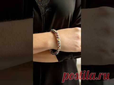 На изображении запечатлена рука человека, одетая в элегантный черный наряд. На руке находится браслет, выполненный в разнообразных цветах, что добавляет изображению яркости и цветового акцента. Браслет имеет плетеную текстуру и обернут вокруг запястья. Фон нейтральный, что позволяет сосредоточиться на самой руке и аксессуаре. Черный наряд издает атмосферу формальности и элегантности. Тон кожи руки светлый, она скрещена перед человеком, демонстрируя аксессуар. Такой браслет можно использовать как модный элемент гардероба, привлекающий внимание за счет своих цветовых решений. Черный наряд также подчеркивает контраст с яркостью браслета, создавая гармоничную композицию.