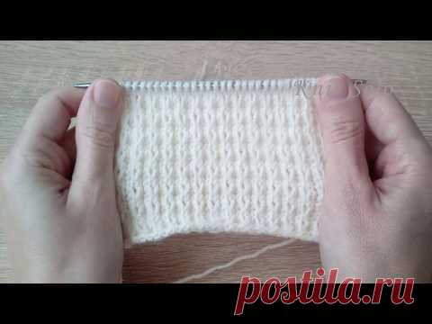 На изображении видны человеческие руки, которые держат вязальный образец, выполненный из белой пряжи. Вязальная спица немного приподнята, поддерживая петли. Вязаное полотно демонстрирует простую текстуру, похожую на резинку. Руки тщательно удерживают изделие, чтобы показать его ровные ряды и аккуратный узор. Фон представляет собой деревянную текстуру, что создает уютную атмосферу. В правом нижнем углу имеется текст "postila.ru", возможно, обозначающий источник или водяной знак. Цвета на изображении в основном нейтральные, что делает акцент на вязаном образце. Общая атмосфера изображения намекает на домашний уют, спокойствие и ручную работу.