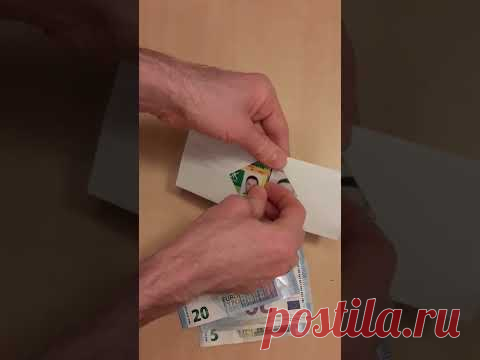 На изображении показан человек, держащий белый конверт на поверхности из светлого дерева. Конверт открыт, и часть его содержимого извлечена. Человек держит в руках маленькие купюры евро номиналом в 20 и 5 евро. Также можно видеть часть какой-то карты или документа с фото. На изображении присутствует водяной знак "postila.ru", что предполагает источник изображения. Атмосфера кажется повседневной, возможно, связано с оплата счета или личными финансами.