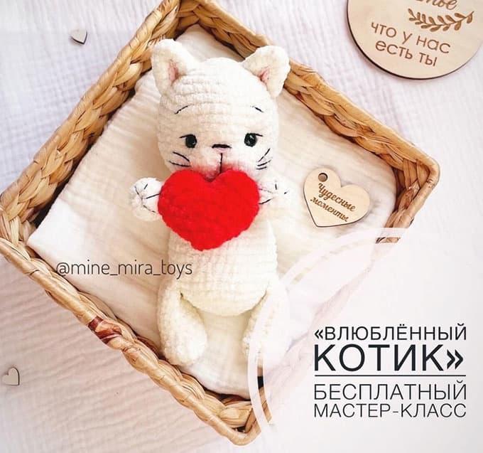 Влюблённый котик крючком. Амигуруми схемы и описания. Автор: Mine_mira_toys | IRINELY.ART