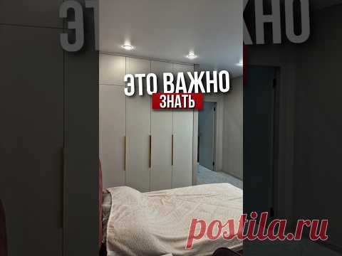 На изображении изображена светлая спальня с минималистичным дизайном. Стены и потолок оформлены в светлых нейтральных тонах, создавая ощущение простора и уюта. Центральное место занимает кровать, покрытая бежевым одеялом, находящаяся перед встроенным шкафом с гладкими панелями и длинными ручками. Над кроватью висит текст белого цвета, гласящий "ЭТО ВАЖНО ЗНАТЬ", с акцентным фоном красного цвета позади слова "ЗНАТЬ". Освещение исходит от встроенных в потолок светодиодных светильников, добавляя комнате ощущение современности и приглушённого света. Также на изображении видно зеркало на двери, ведущей в смежное помещение. В правом нижнем углу виден водяной знак сайта "postila.ru", указывающий на возможное интернет-источник изображения.