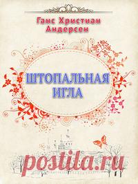 На изображении обложка книги "Штопальная игла" Ганса Христиана Андерсена. Обложка оформлена в нежных пастельных тонах с преобладанием бежевого цвета. В верхней части крупно написано имя автора — Ганс Христиан Андерсен — красными буквами. В центре изображена декоративная рамка в виде овала с цветочными узорами ярко-красного и розового оттенков по краям. Внутри рамки находится название произведения "Штопальная игла", выполненное в выделяющемся синем цвете. Нижняя часть обложки украшена черно-белой графической зарисовкой, изображающей городскую панораму с архитектурными элементами, деревьями и изящной бабочкой слева. Простая, но изысканная композиция создает литературно-романтическую атмосферу, привлекающую внимание к книге.