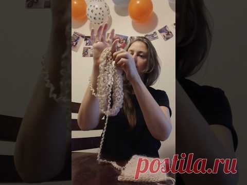 На фотографии изображена девушка, сидящая за деревянным столом, увлечённо занимающаяся вязанием. Она держит светлую пряжу и спицы, стараясь связать новый элемент. Одежда её тёмного цвета, что контрастирует с белой стеной на заднем фоне. Над её головой висят разноцветные воздушные шары: оранжевые и белые, а также гирлянда из фотографий, которые добавляют особую атмосферу праздника или особого события. На фотографии мы можем заметить логотип "postila.ru" в правом нижнем углу. Вся композиция создаёт уютное и творческое настроение, передавая атмосферу домашнего рукоделия.