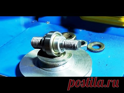 На изображении представлен механический компонент, состоящий из винта с резьбой и подшипника, размещённого на металлической платформе. Компонент расположен на синей поверхности, указывающей на рабочую область или верстак. Винт выглядит тщательно обработанным, металлический блеск которого отражает свет, подчеркивая его структурную целостность и качество изготовления. Подшипник вставлен между двумя металлическими шайбами, демонстрируя точность процесса сборки. На заднем плане видны дополнительные шайбы и детали, создающие атмосферу технической мастерской. Свет акцентирует внимание на центральной части изображения, выделяя блестящую поверхность металла и контрастируя с темными тонами фона. Внимание к деталям и качеству метала говорит о высоком уровне инженерного исполнения в рамках механической или промышленных технологий.