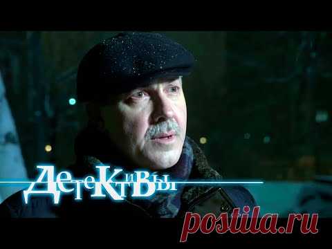 На изображении изображен мужчина среднего возраста, стоящий на улице в вечернее время. Он носит черный берет и шерстяное пальто, виден его аккуратный серый мустач. Лицо освещено холодным прежде зеленоватым светом, который придает всей сцене атмосферу интриги и загадочности. На переднем плане, слева, расположено слово "Детективы" в стилизованном шрифте, которое, возможно, является названием передачи или фильма, обрамленным голубоватым подсвечивающим эффектом, что подчеркивает таинственность изображения. На заднем плане заметны фиксированные очертания зимнего парка с заснеженными деревьями, которые нечетко выделяются на фоне темного неба. Снег как бы медленно опускается вниз, создавая ощущение тишины и спокойствия, несмотря на подчеркнутую напряженность момента. В нижнем правом углу отображается логотип "postila.ru", что может свидетельствовать о размещенных материалах либо сайт-ресурсе.