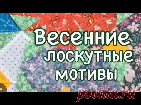 Изображение представляет собой коллаж лоскутных мотивов с надписью "Весенние лоскутные мотивы". Фон состоит из различных узоров и цветов, включая зелёные, красные и фиолетовые оттенки. Каждый лоскут имеет уникальный рисунок, включая цветочные и геометрические узоры. Ощущение весеннего обновления и яркости доминирует в изображении. Стиль напоминает традиционное квилтинг искусство. В правом нижнем углу находится логотип сайта "postila.ru", указывающий на источник изображения. Это подчеркивает связь с творческими проектами и рукоделием, предлагая идеи для воплощения в текстильных работах.