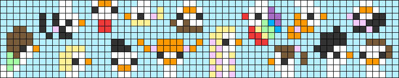 Изображение представляет собой схематический рисунок в виде мозаики, выполненной в пиксельной технике. Основной фон композиции выполнен в голубом цвете, создающем впечатление яркого, чистого неба или спокойного моря. На этом фоне размещены разнообразные фигуры, каждая из которых имеет свой уникальный узор и цветовую гамму. На рисунке преобладают теплые и насыщенные оттенки, такие как оранжевый, коричневый, черный и белый, а также некоторые элементы розового и желтого цветов. Изображены стилизованные фигуры персонажей, выполненные в минималистичном стиле, каждая из них имеет свой индивидуальный характер. Присутствуют элементы, напоминающие человеческие фигуры, каждая из которых нарисована особым уникальным способом, что придает картинке игривость и оживляет композицию. Это может быть использовано для создания браслетов в стилях рукоделия или DIY. В нижнем правом углу можно заметить название сайта postila.ru, добавляющее аутентичность изображению и намекающее на ресурс для любителей создавать вещи вручную. Общая атмосфера изображения вызывает восторг и желание заняться творчеством.