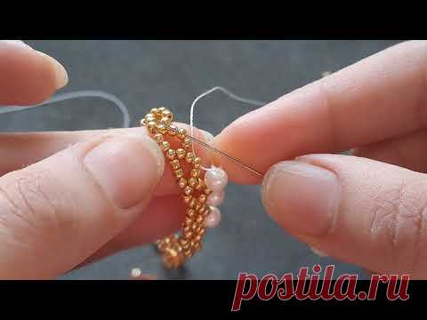 На изображении крупным планом запечатлен процесс создания бусин из бисера. Чьи-то руки осторожно держат иглу, нанизывая маленькие золотистые и перламутровые бусинки на тонкую леску. Кончики пальцев сосредоточены на правильном укладывании бисера, создавая аккуратный узор. Фон затемненный, чтобы подчеркнуть сияние бусин, которые блестят под светом. В нижнем углу изображения виден водяной знак "postila.ru", что указывает на источник. Атмосфера изображения создает ощущение кропотливой ручной работы и уделения внимания мелким деталям, что требует терпения и мастерства. Это искусство бисероплетения является популярным хобби и способом выражения креативности. Каждая бусинка аккуратно подбирается, и весь процесс выглядит медитативно.