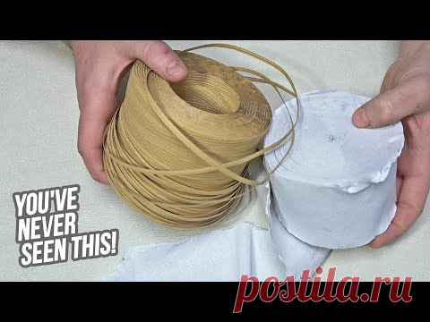 На изображении показаны две руки, держащие два различных предмета. В левой руке находится катушка с коричневой лентой, которая выглядит как тесемка или тонкая лоза, аккуратно свернутая в круг. В правой руке удерживается цилиндрический предмет белого цвета, покрытый материалом, похожим на маскировочную бумагу или ткань. На белом фоне заметен разорванный кусок бумаги, создающий текстурированный эффект. В левом нижнем углу изображены слова на английском языке "YOU"VE NEVER SEEN THIS!", что добавляет элемент интриги. Этот визуальный материал вызывает интерес и заставляет задаваться вопросом о предназначении этих объектов. Атмосфера изображения нейтральная и фокусируясь на нюансах и материалах удерживаемых объектов.